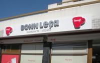 Legendas e logotipo em monobloco, frentes em acrílico revestido a vinil e laterais em alumínio lacado. Iluminação através de LED’s.